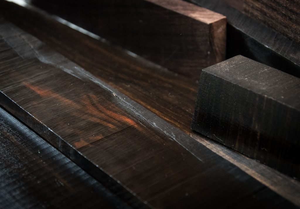 Black, Curly, Bastone, Claro, and other variants; we love it and use it! Probably our most used and loved. We keep a good selection on hand including bigger stock like slabs, and 8/4 (2″) thick stock in addition to more usual dimensions including crotch cutoffs, etc.