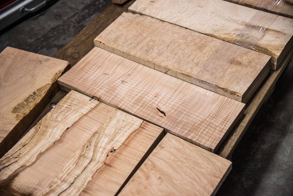 All the Maples, including but not limited to Curly, Quilted, Rock, White, Spalted, Birds Eye, Ambrosia…you name it, we got it, had it, or can get it! Next to Walnut, probably our most used species of wood. Currently a good amount of curly ambrosia on hand.